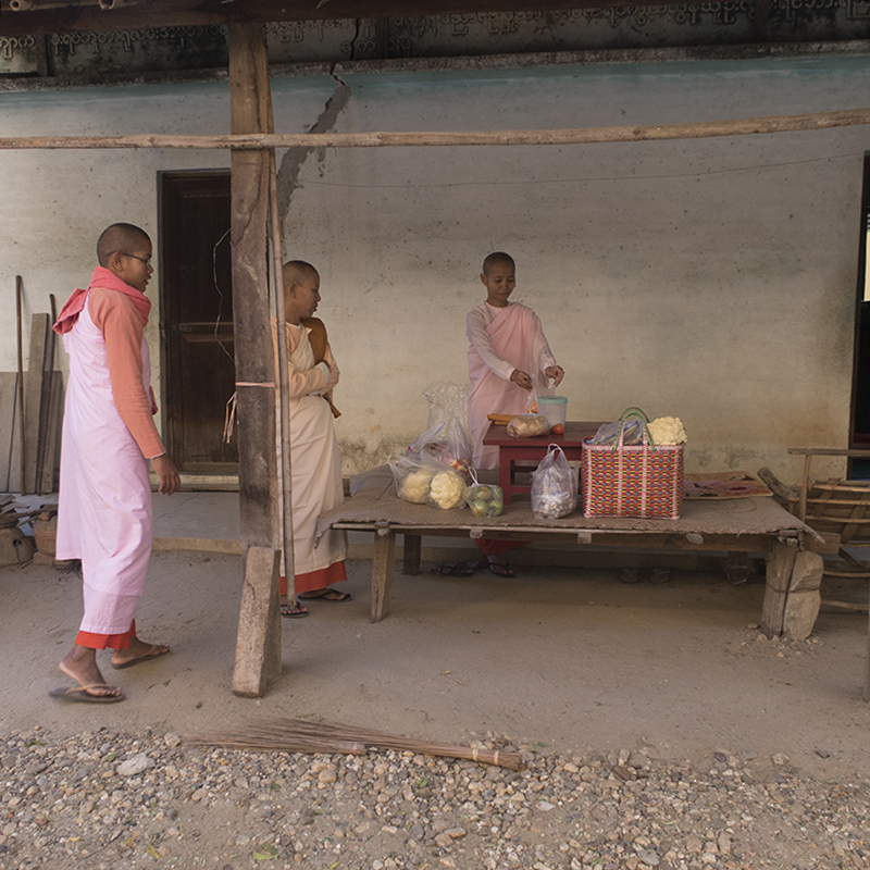 Leider war die Konversation etwas rudimentär. Mein Burmesisch (Mingalaba!) gab zu wenig her. Ein paar Fotos, eine geschenkte Mandarine, ein paar Blicke in die Klause und in den Nonnenalltag. Dann zog ich mich diskret zurück.