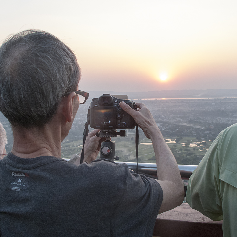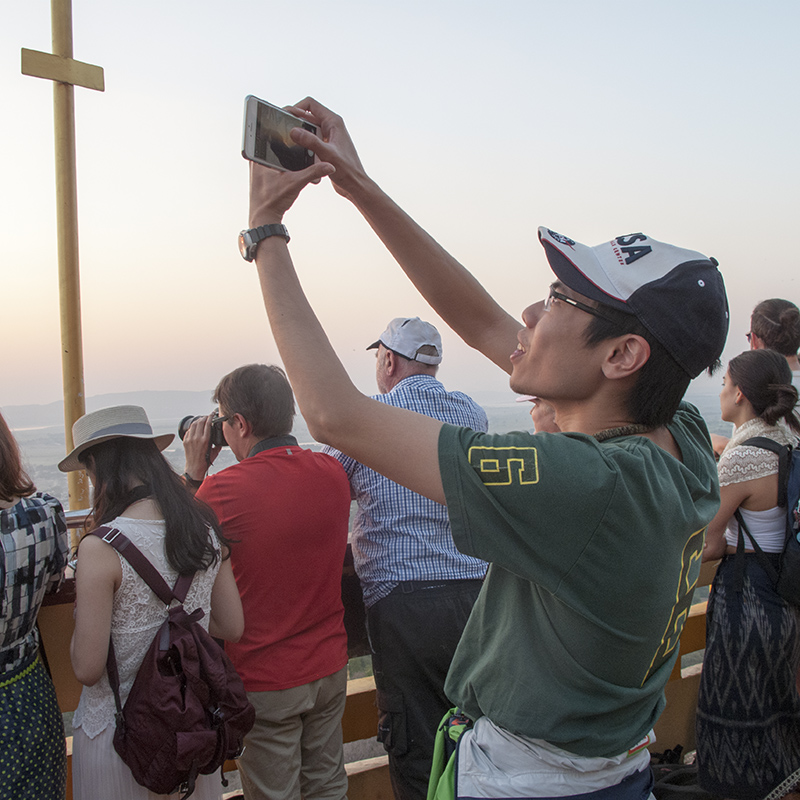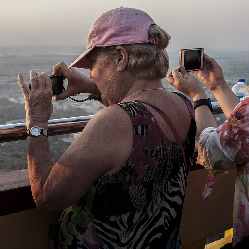 Fünf Minuten vor Sunset bricht der Nahkampf um die zweitbesten Plätze aus. Zum Glück sind die Teleobjektive heute so massiv und in Knüppelform gebaut. Mit der professionellen Canon EOS hat man sogar noch einen leichten Vorteil gegenüber der entsprechenden Nikon. Mit dem Blitzgerät lässt sich plötzlich vordrängendes Handyfolk effizient neutralisieren.