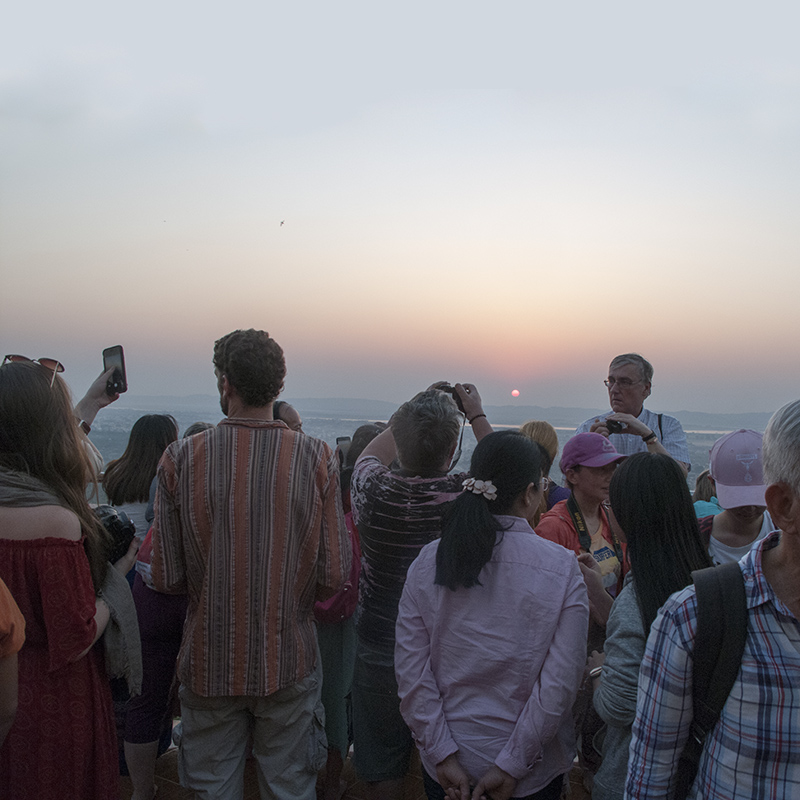 Der tägliche Kampf um den idealen SUNSET nimmt groteske Züge an. Offenbar sind in den Reiseführern der ganzen Welt die obligatorischen SUNSETs aufgeführt. Blitzgerät empfehlenswert! Die Orte sind tagsüber verlassen. Punkt 17.00 Uhr fahren Busse und Taxis vor. Besonders die Chinesen und Japaner bauen ihre Stative auf, die Eos und Nikons mit den 10'000-Dollar Teleobjektiven.